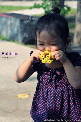 但是我還是回答:「好呀!再叫爸比帶我們去吹泡泡,不過妳要記得帶吹泡泡的唷~」