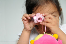 | 這台是聲光相機,有咔嚓聲,也有閃光燈。 這天她終於發現那個洞洞的功能了, 所以在很仔細觀察和Click... |