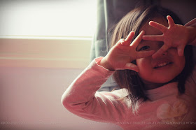 | 新創的姿勢, 最近常這樣子蓋臉讓媽咪拍照。 (真的以為我這樣子就拍不到了嗎? *-*) |