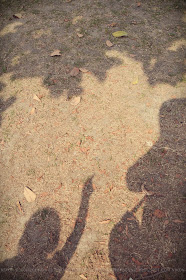 | (請Elaine用影子摸摸到地上的樹葉陰子,結果太遠啦!) 我自創O.S:「媽咪,妳看太陽超大的~」 |
