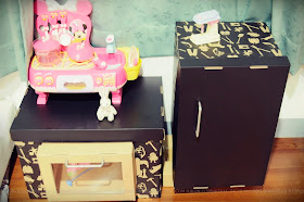 | 第一天大致上做好的成品。 只是冰箱和烤箱的門會自動打開, 裝上磁鐵也一樣會因為手把太重或是門不夠密合 @@ 材料都被我用光了,所以隔天再去買材料。 |