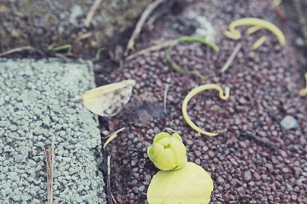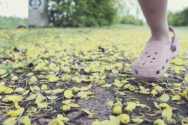在盪鞦韆時,我發現這一地黃黃花瓣們。