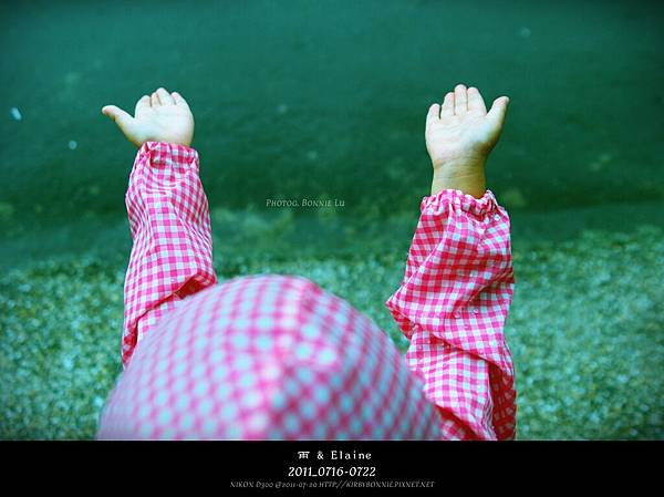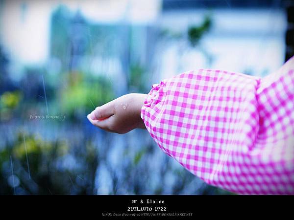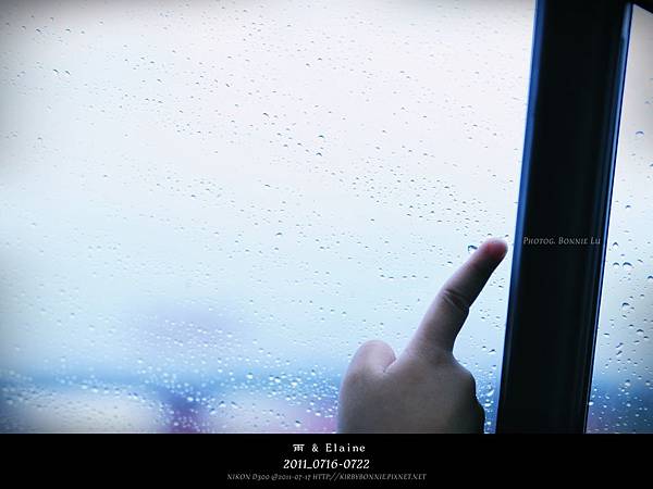出門的路上,遇到雨,玩玩隔玻璃感覺雨滴(溜~)。
