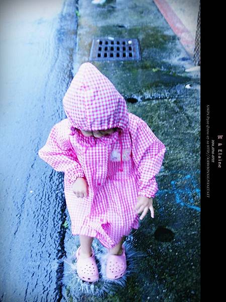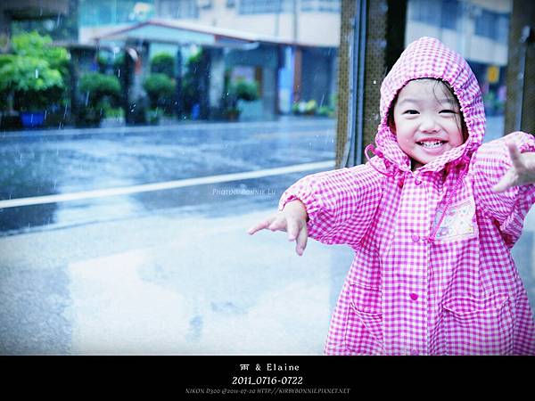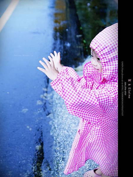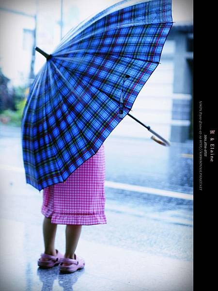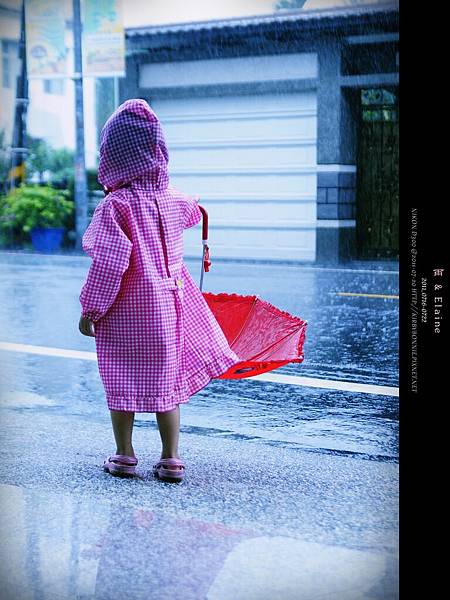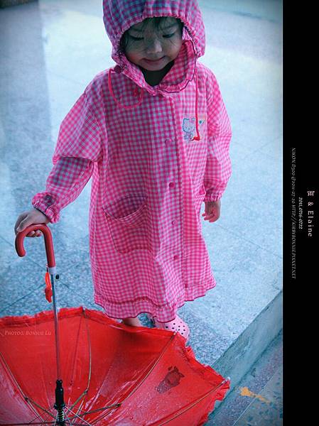最後再拿個比自己大的雨傘,往外看雨兒落下。