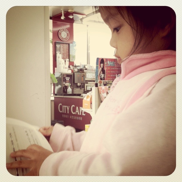 在小七看雜誌,這是自己挑來看的書。 |