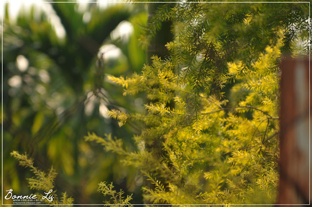 在回家的路上, 騎車晒太陽, 找找新的事物, 是我們沒有仔細看過的。 這顆樹被陽光暖溫的照顧著, 散發慵懶的氣息, 隔著鐵圍欄, 我們看著他。 |