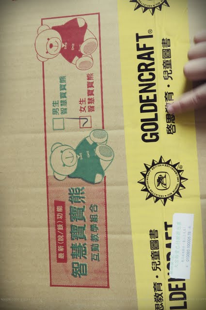 | 開箱了,箱中箱就是這台車,裡頭放的就是智慧寶寶熊。 (Elaine挑的是女熊寶寶) |